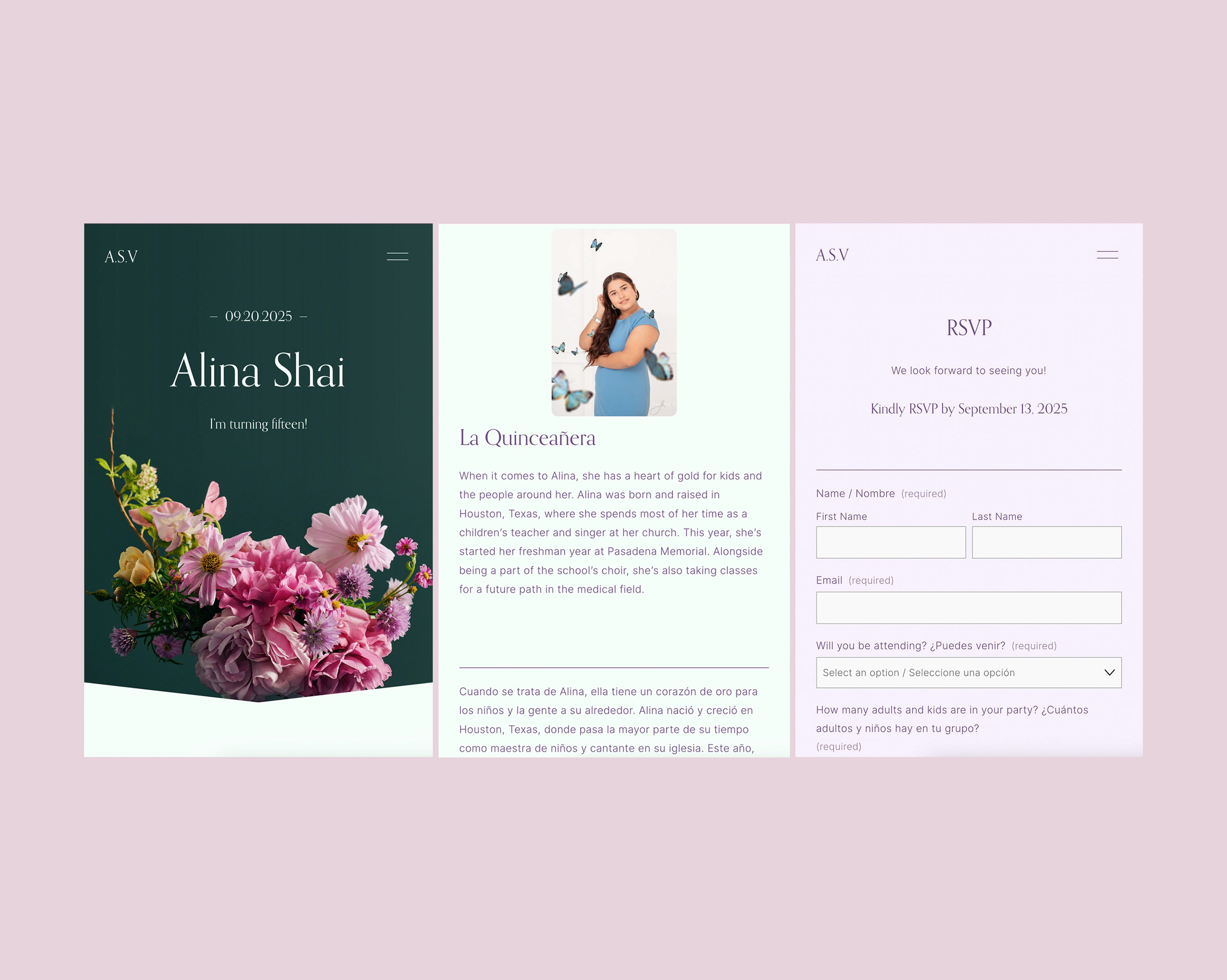 This website was used as a tool for guests to be informed of and RSVP to the client's quinceañera.